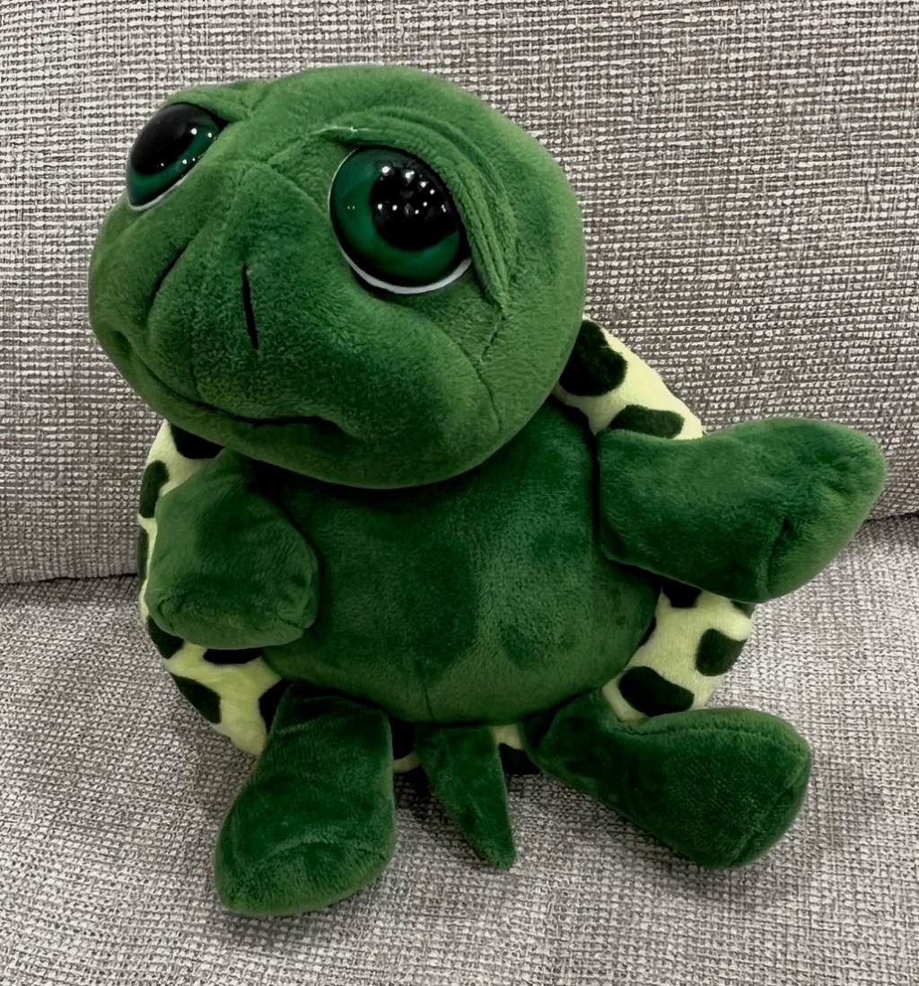 Bob is a questionable turtle. He is not one of my favourite stuffies. I don’t like him that much, though he grows on you a tiny bit. I didn’t like him at all when I first got him but his personality made me like him more. My brother owns his identical twin, “Shelly”. He has poison powers and is also a super villain.